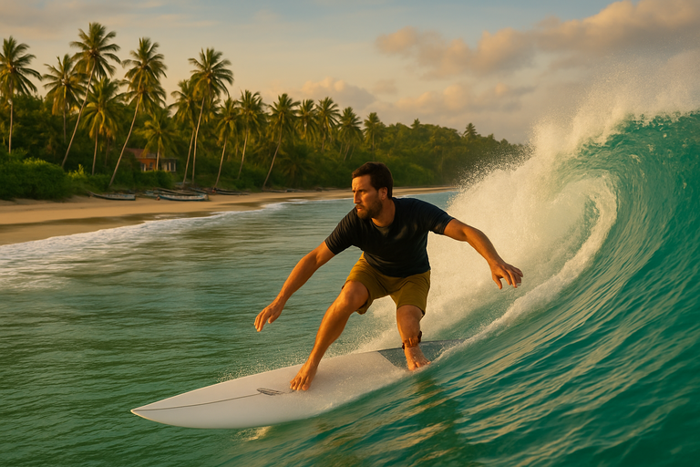 The magic of surfing in Sri Lanka comes from its warm waters, friendly surf towns, gentle learning waves, and its beautiful beaches lined with coconut palms. Surfers fall in love with the island because the atmosphere is relaxed, local surf culture is growing, and the water stays at a comfortable 26–29°C all year.